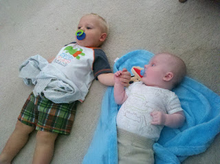 Izaak had his 4-month check-up last week and he's doing great! He had another round of immunizations too and took them like a champ! He weighed in at 17lbs, 10oz (89th percentile) and is 27" tall (top of the percentile for his age). Do I really need to tell you that he's busting out of his 3-6 month apparel already?? Luckily, we got a package in the mail today from Grandma and Grandpa that contained some 9-month sized outfits (thanks again!!). And our new favorite store is "Once Upon A Child", by the way. (If you're not familiar, it's a used kid's clothing & accessories store.)